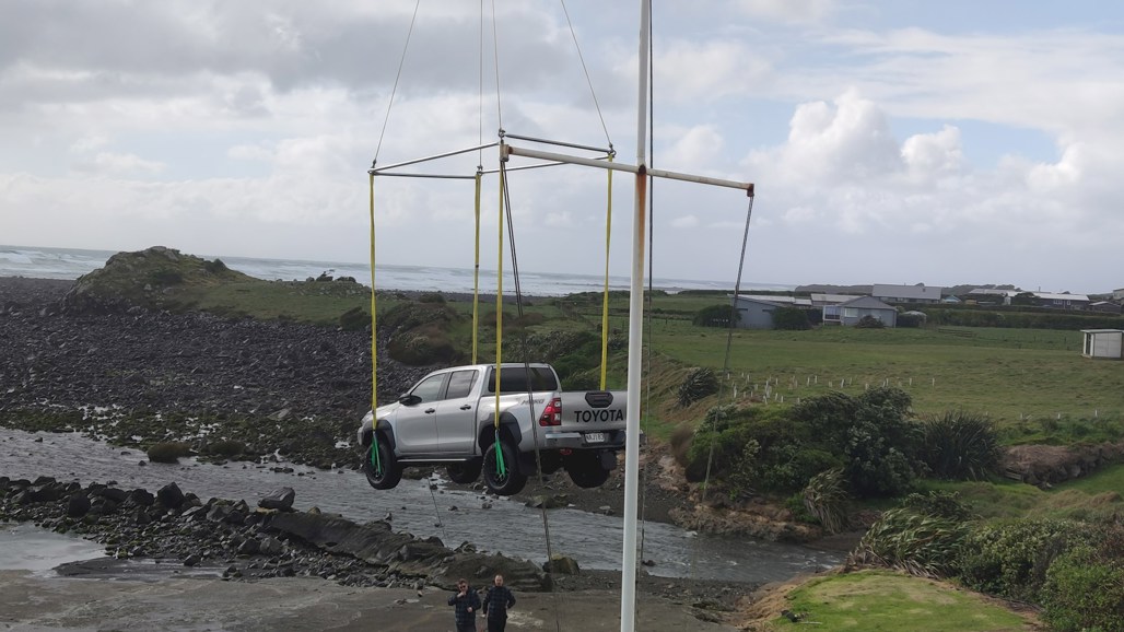 TNZ dropped the Mako into the media launch for the revised Hilux range near New Plymouth this week – quite literally, because it was suspended underneath a Sikorsky UH-60 Black Hawk helicopter before joining the rest of the range on the ground at the Cape Egmont Lighthouse.