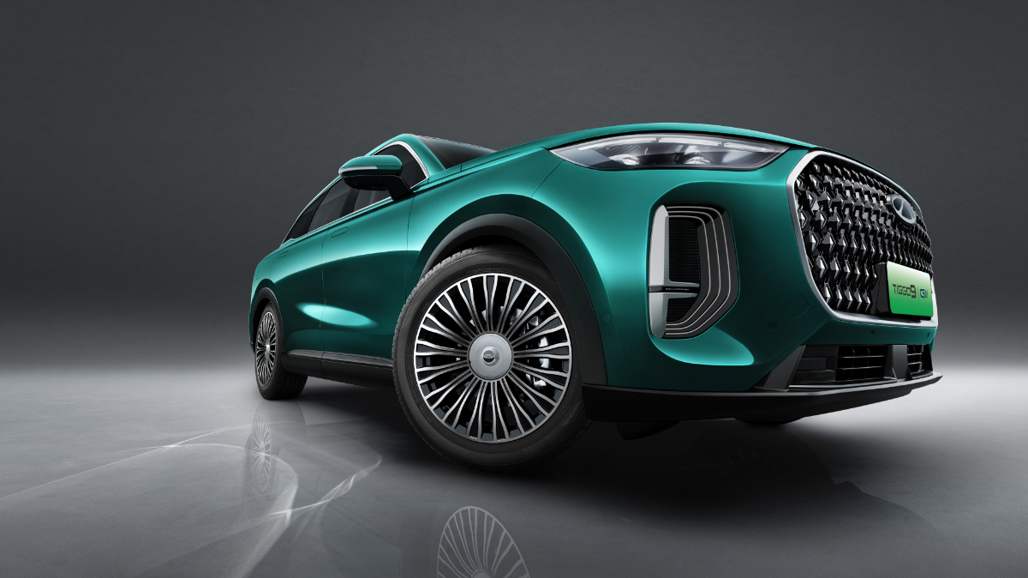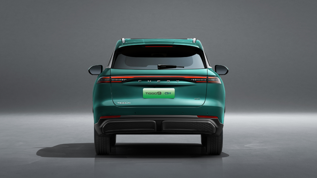 The "Super Hybrid" plug-in powertrain moves from a FWD format in the Tiggo 7/8 to triple-motor AWD technology in the Tiggo 9, with maximum outputs of 315kW/580Nm. The rear axle is exclusively electric.
