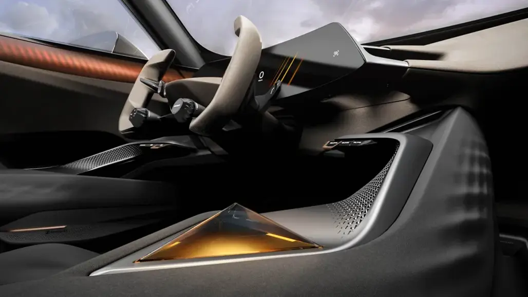 The racing– and gaming–inspired steering wheel features satellite buttons for "total control with zero distraction", while the elevated centre console serves as the backbone of a fully integrated, tactile and functional mono cockpit.