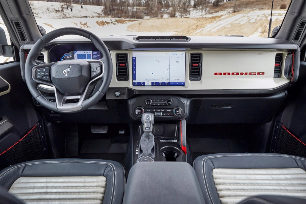 The Bronco in question is finished in Wimbledon White paint, and features red decals. It also gets colour-matched steel wheels that compliment the understated nature perfectly.