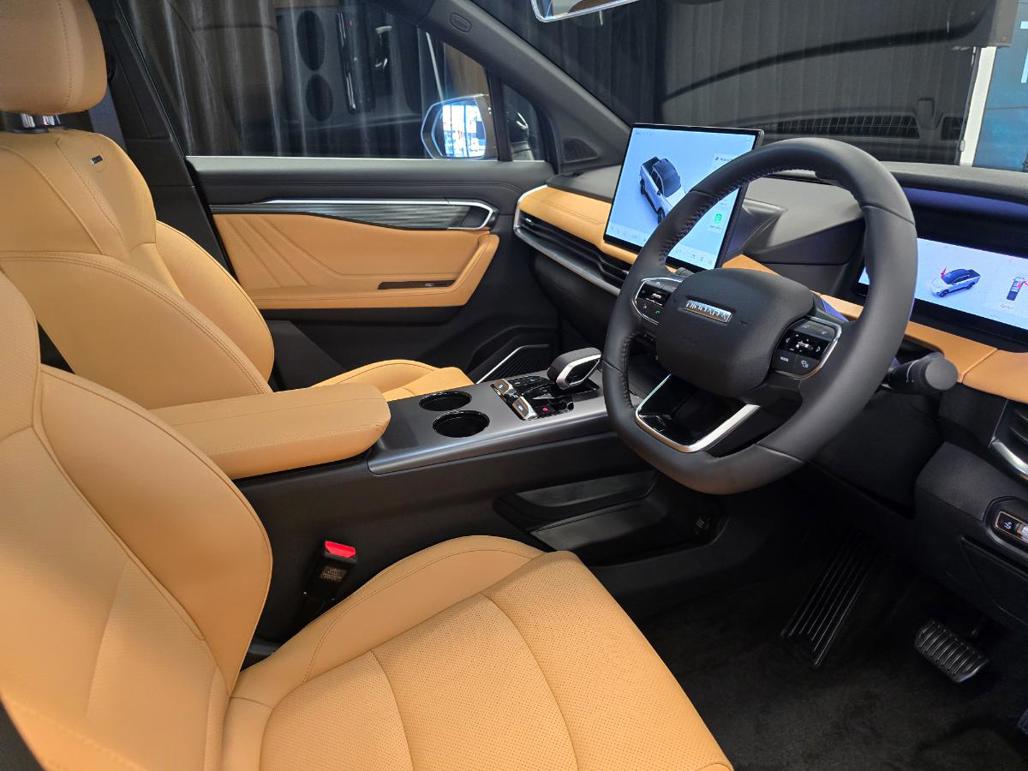 Inside, the Riddara's cockpit is more car-like than any ute before, with ventilated front and rear seats and a large 14.6-inch "floating" infotainment touchscreen. A key feature of the big screen is the "540-degree" surround view monitor, which provides a comprehensive view around the vehicle, including a "transparent floor" effect.