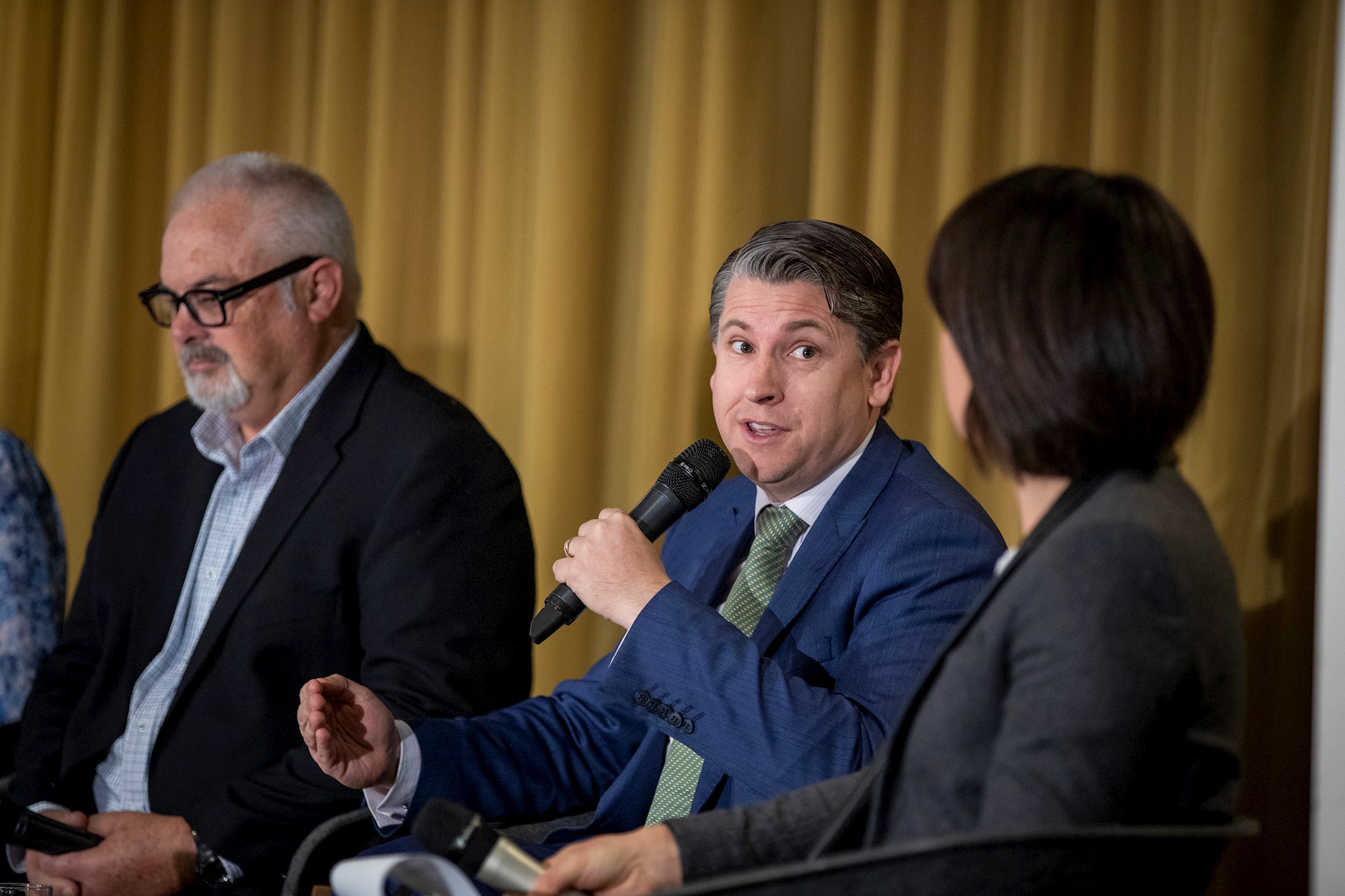MIA chief executive David Crawford (above left) and Minister Wood (above, centre) appeared together on a DRIVEN Clean Car discussion panel earlier this year, at NZME's Auckland premises.