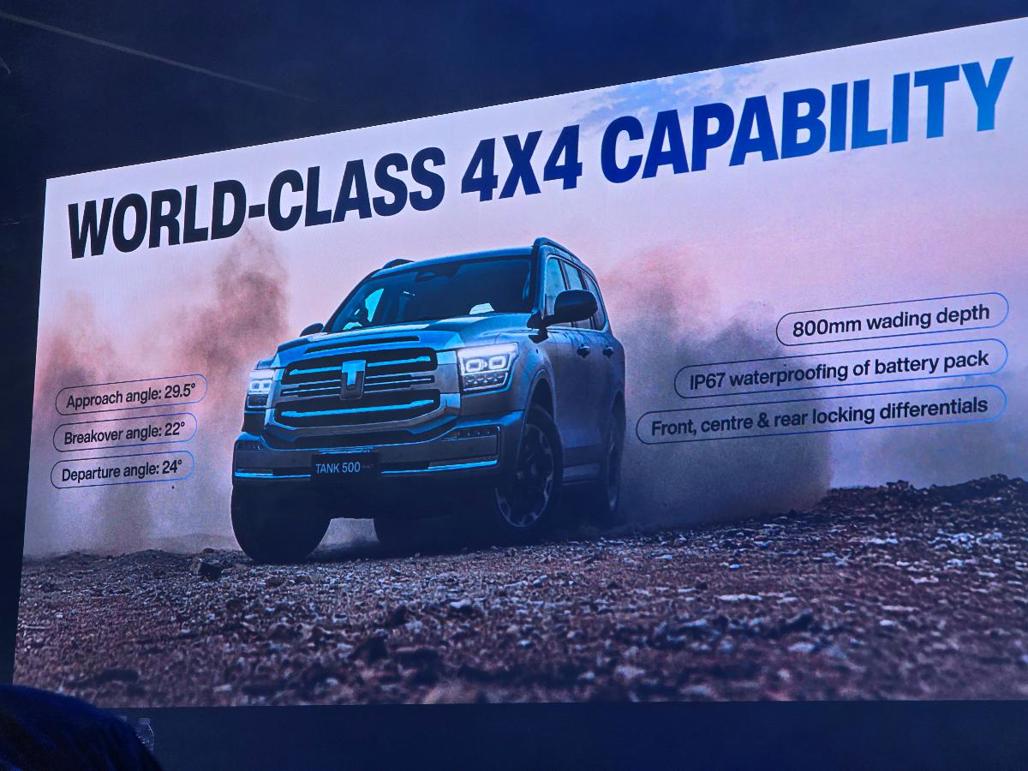Beyond its power, GWM says the Tank 500 Hi4-T delivers exceptional efficiency and electric-only capability, thanks to its sophisticated hybrid architecture.