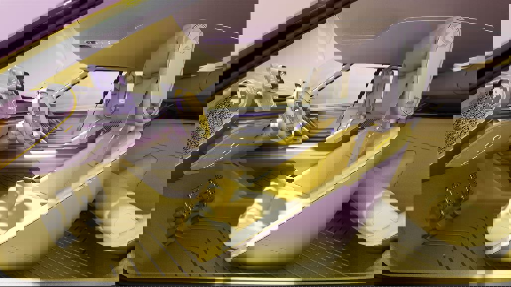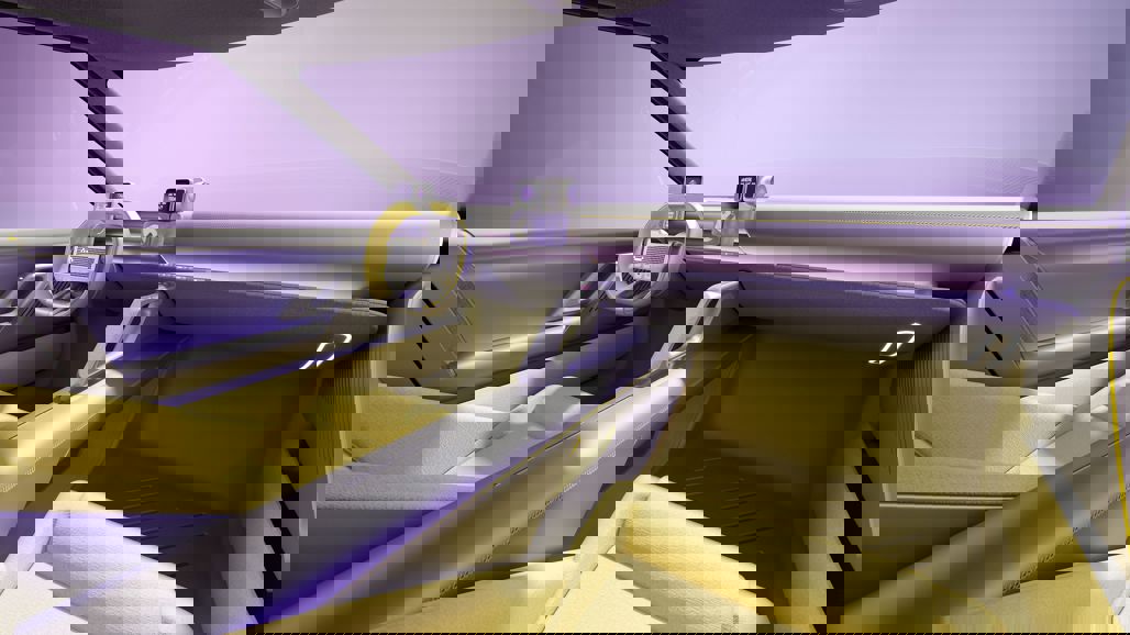 Inside, the theme continues with an anodised-effect exterior finish matched to lemon-tinted glass and wheels. The cabin mixes soft yellow and grey tones with ocean-waste textiles and aluminium foam, proving sustainability can feel premium.