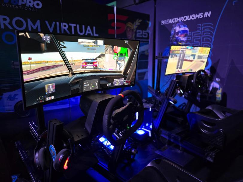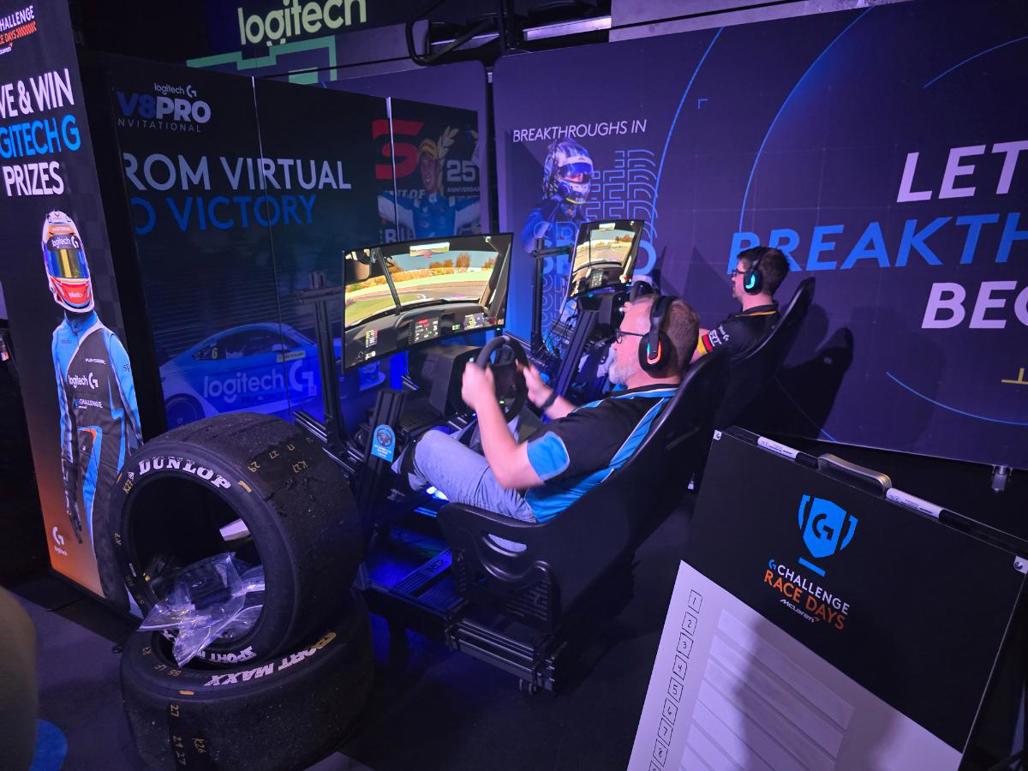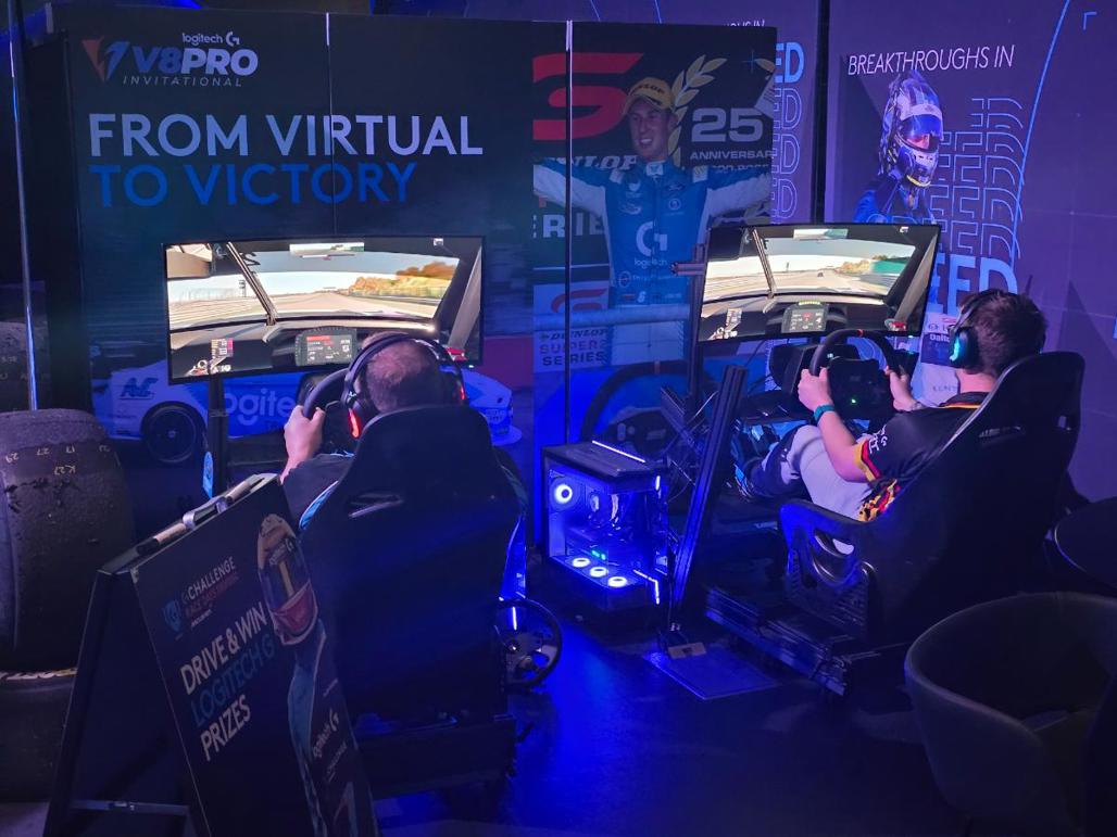 The second sim area packed a pair of G Pro wheels and pedals running iRacing with Aussie Supercars Ford Mustangs around Sandown. With all driver assists off, with the exception of damage, which was dialed back to cosmetic only so that the uninitiated didn’t end their run leaving the pits.