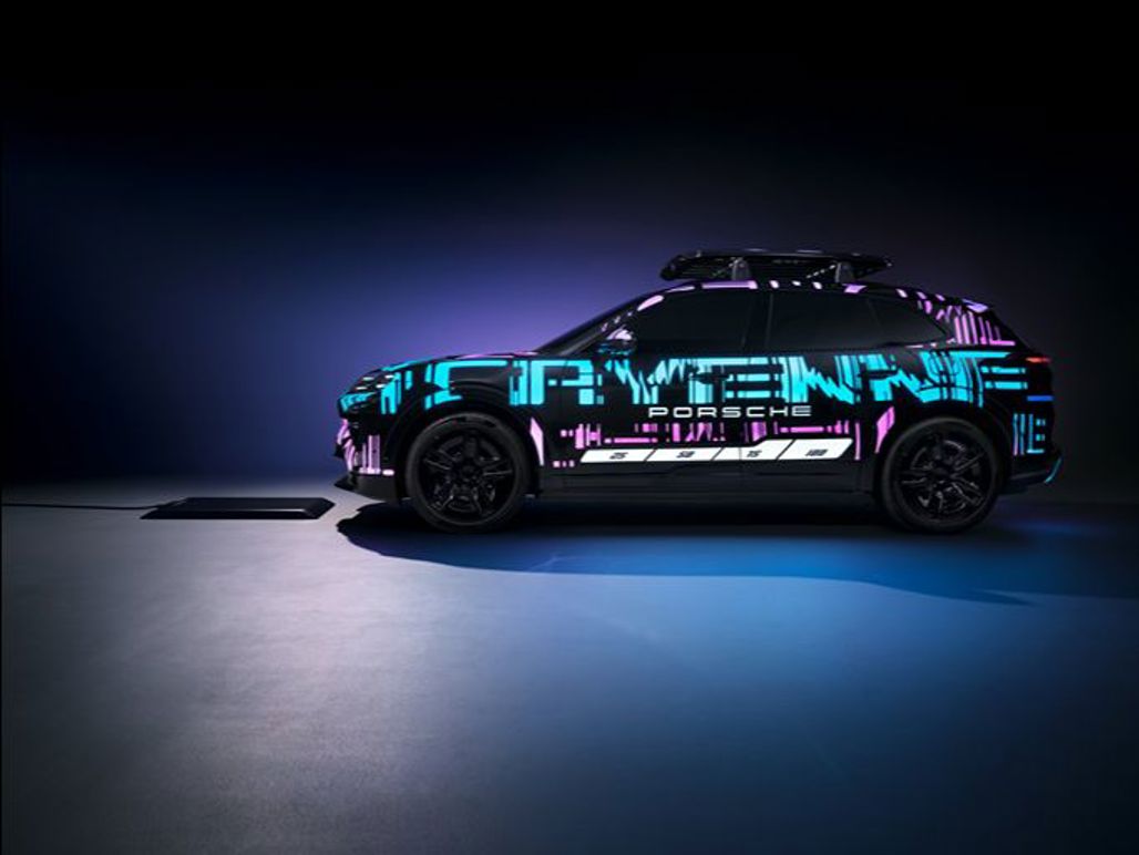 The Cayenne Electric itself is yet to be fully revealed. A Wireless Charging show car at the IAA in Munich this month is sporting a fluorescent camo-paint finish. As soon as electricity flows, an body image with brightly colored surfaces is created.