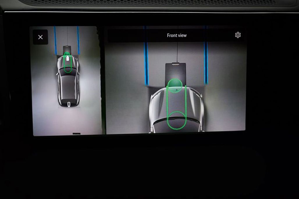 A special view in the Surround View parking function makes it easier to park the Cayenne in the best charging position. As soon as the parking position above the floor plate is reached and the parking brake is activated, the charging process begins. Customers don't need to do anything else.