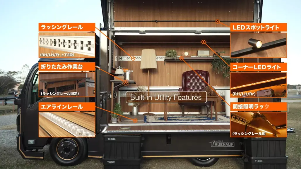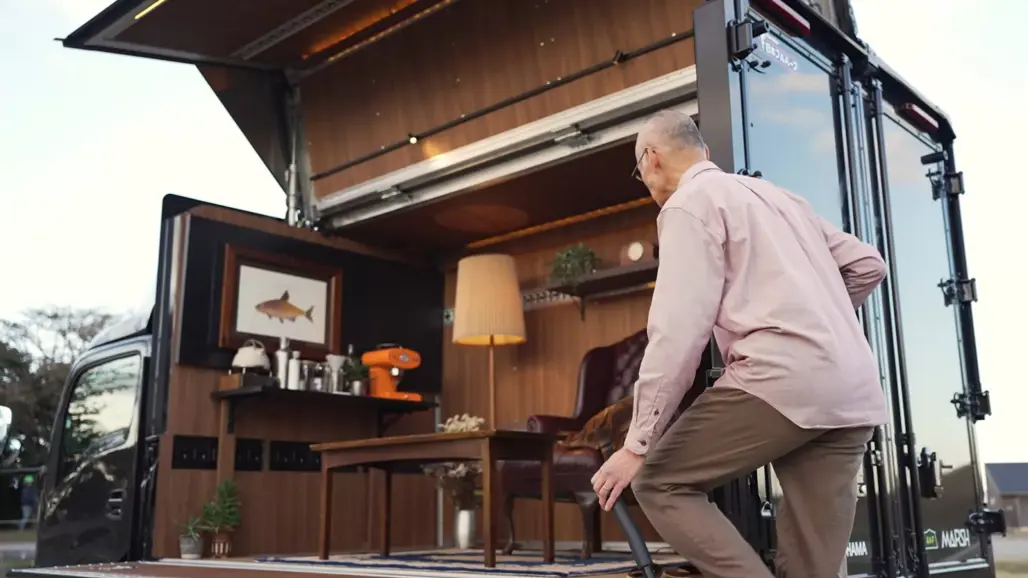 Isuzu has taken its workhorse Elf (known locally under the N-Series badge) and transformed it into something far less industrial: a mobile lounge complete with wooden flooring, shelving and an actual couch.