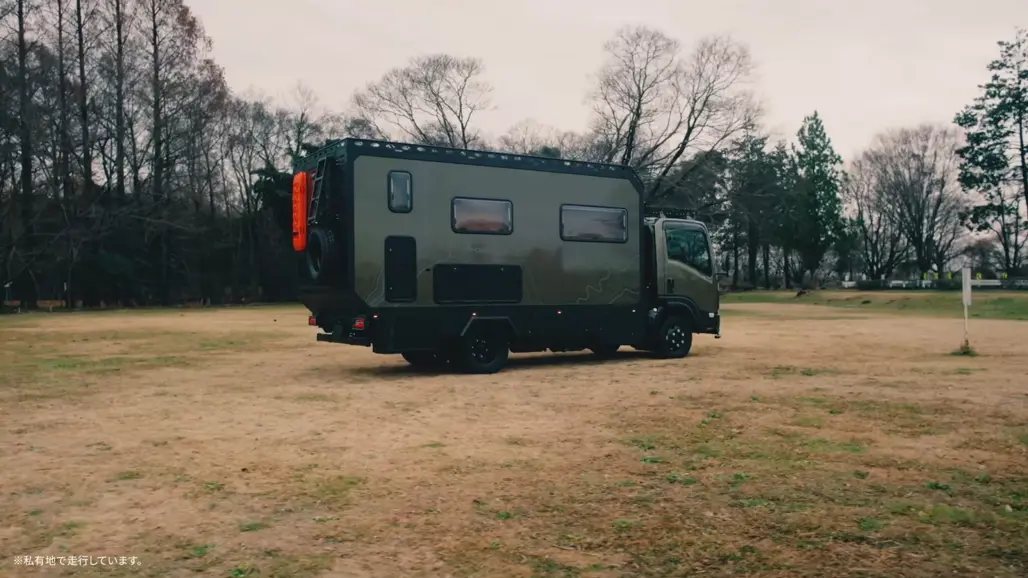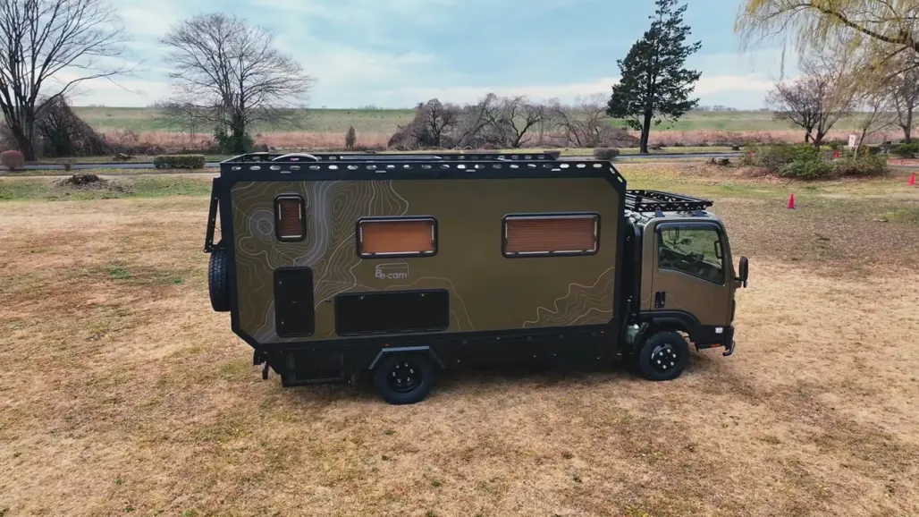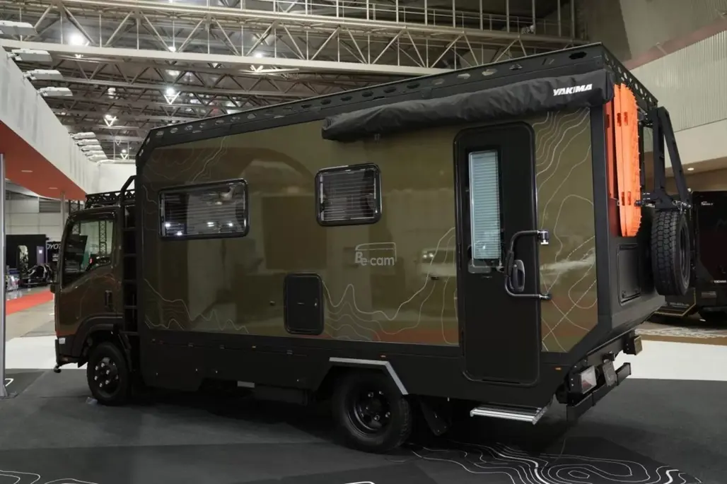 If a couch isn’t enough, Isuzu also presented the Be-Cam GeoRoam, a far more ambitious camper conversion developed with Nippon Tokushu Body.