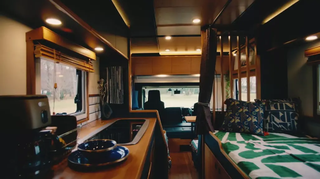 It’s less “box truck with a sofa” and more compact motorhome built on commercial underpinnings.