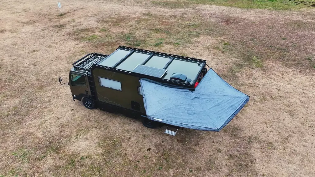 In the promotional footage, the space is used as a pop-up coffee nook overlooking the ocean. Realistically, it’s more likely to serve as a marketing showcase than a retail product, but it highlights how adaptable a simple cab-and-chassis platform can be.
