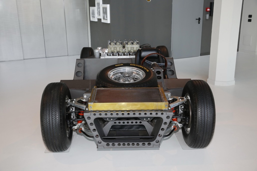 In November 1965, showgoers expecting the usual gleaming metal instead found themselves crowded around a skeletal frame of folded 0.8-mm steel, drilled full of lightening holes and wearing a transverse-mounted 4.0-litre V12.