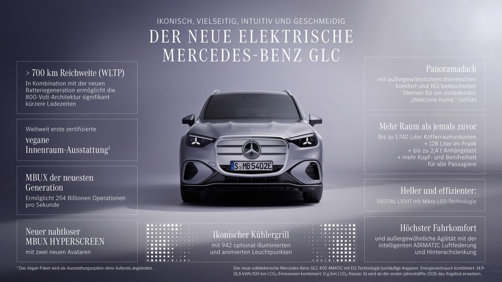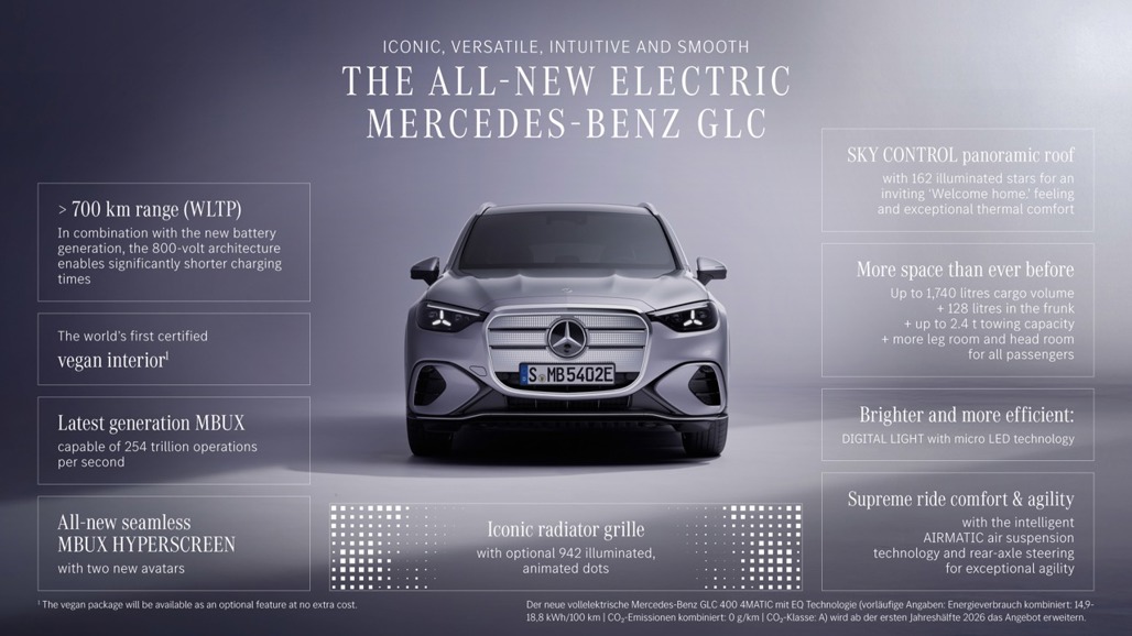Slated to arrive in the first half of 2026, the new model promises to blend the GLC’s everyday practicality with a powerful new EV drivetrain.