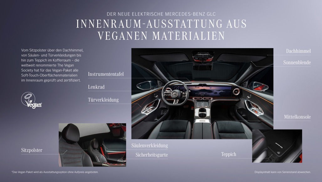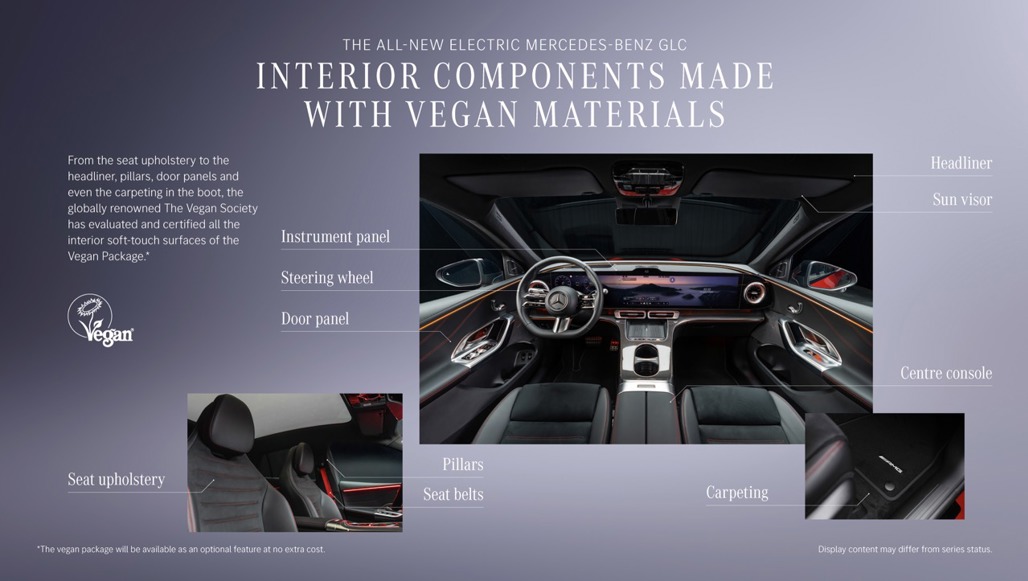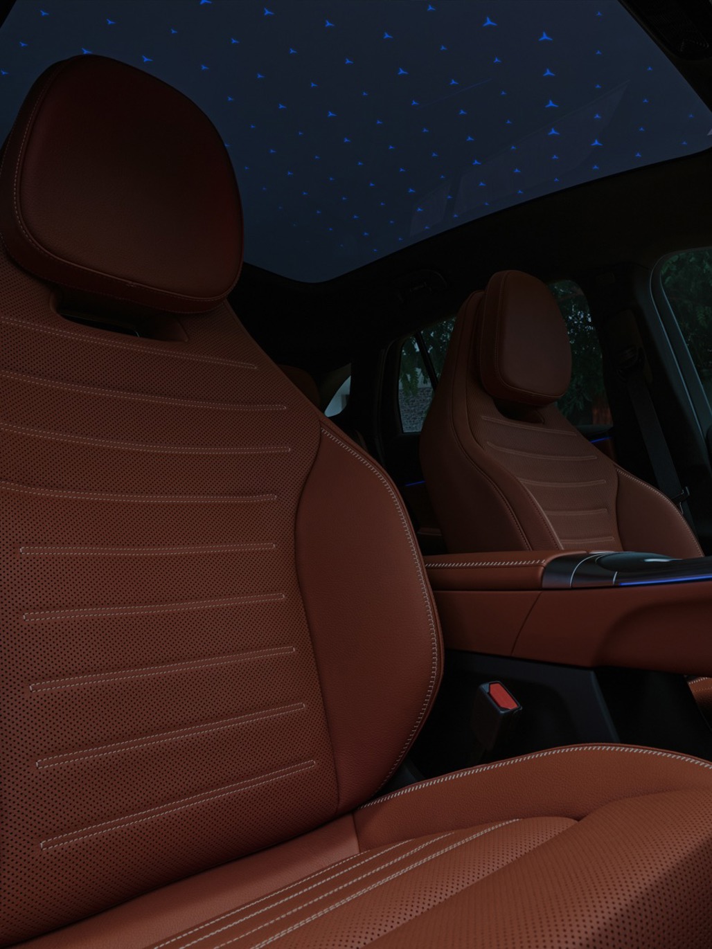 Optional extras add theatre: a panoramic Sky Control roof capable of displaying 162 illuminated stars at night, and the world’s first vegan-certified interior package, endorsed by The Vegan Society.