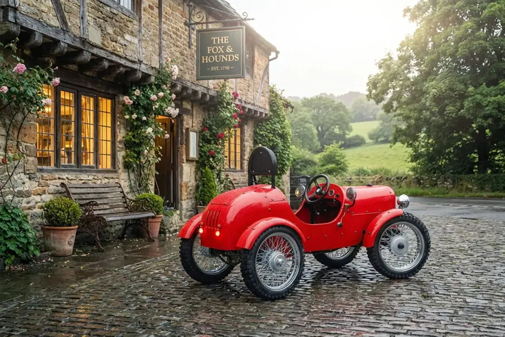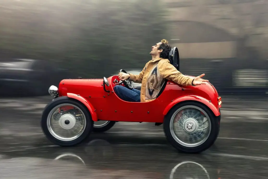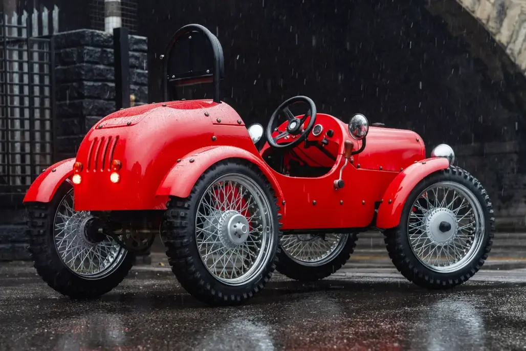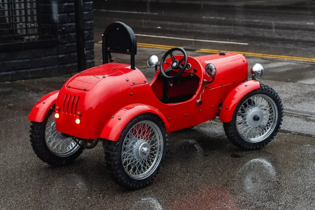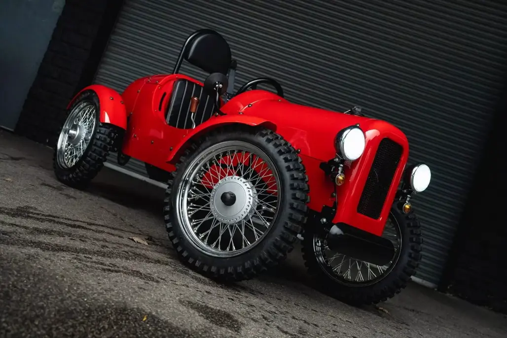 At just 2286mm long, the Rivet is about the size of a large bicycle with ambition. Its styling sits somewhere between a pre-war roadster and a miniature farm runabout. Wire wheels wear 17-inch tyres, and generous ground clearance gives it a purposeful stance.