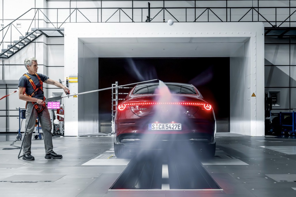 - The new electric CLA achieves a drag coefficient from 0.21, putting it among class-leading aerodynamic production cars.