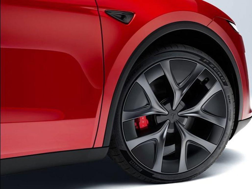 The Performance also has a new 16in touchscreen, with thinner bezels and higher resolution, offering nearly 80% more pixels than the 15.4in display on other Model Y variants.
