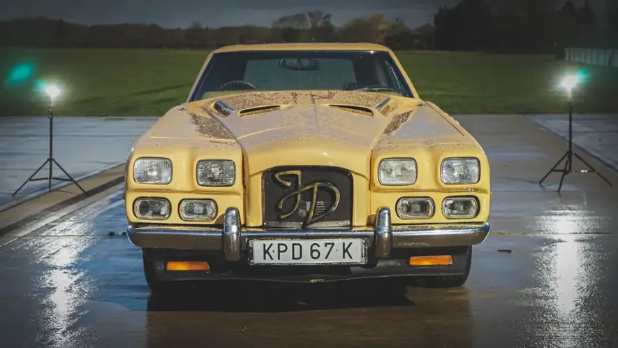 Dodd initially fitted the car with a Rolls-Royce grille and Spirit of Ecstasy mascot, but Rolls-Royce took a dim view of this use of its trademarked icons, resulting in a successful lawsuit against Dodd in the early 1980s. Consequently, Dodd replaced the grille with his initials.