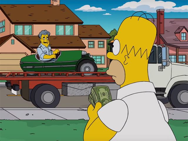 Aired last week in the US, the latest Simpsons episode could perhaps contain the mother lode of quirky — and realistically-penned — cars, however. Titled To Courier with Love, the episode starts with Homer discovering a diminutive Morgan 3-wheeler while cleaning out his garage.