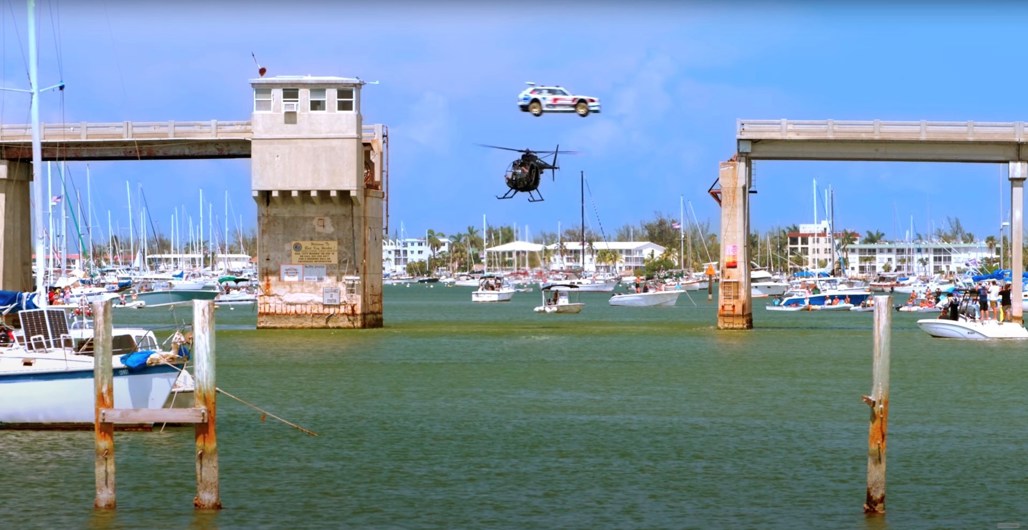 It involves a jet, helicopter, boats, a jet-ski, 265km/h jumps, and more wild antics! Does it come as any surprise that it's all filmed in Florida?