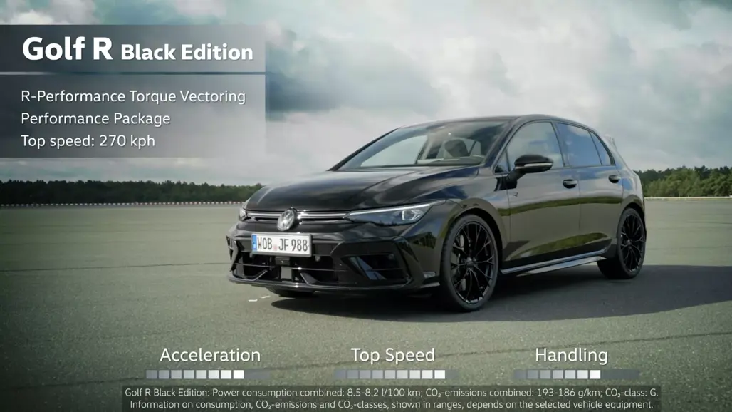 However, the Golf R Black Edition benefits from a factory-fitted Performance Package, increasing its top speed to 270km/h and giving it a slight weight advantage.
