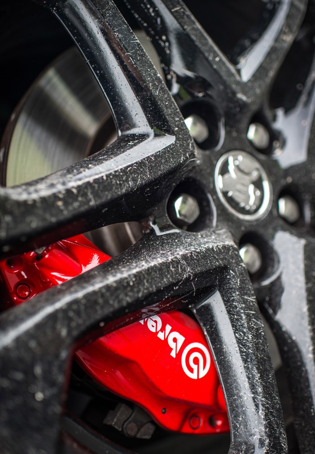 It stands out in any car park, and the bold colour is nicely offset with a glossy black and chrome grille, black Redline bumper bar, two black louvres on the bonnet, shiny black 19-inch alloy wheels, and a black spoiler on the boot lid.