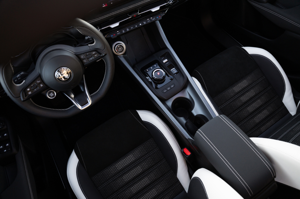 It moves from there to the more familiar Ti and flagship Veloce. But Alfa has also introduced a launch edition called Tonale Sport Speciale, with extra silver and black trim, black-and-white Alcantara upholstery and some specific dashboard graphics. Sport Speciale can also be ordered with a constrating black roof.