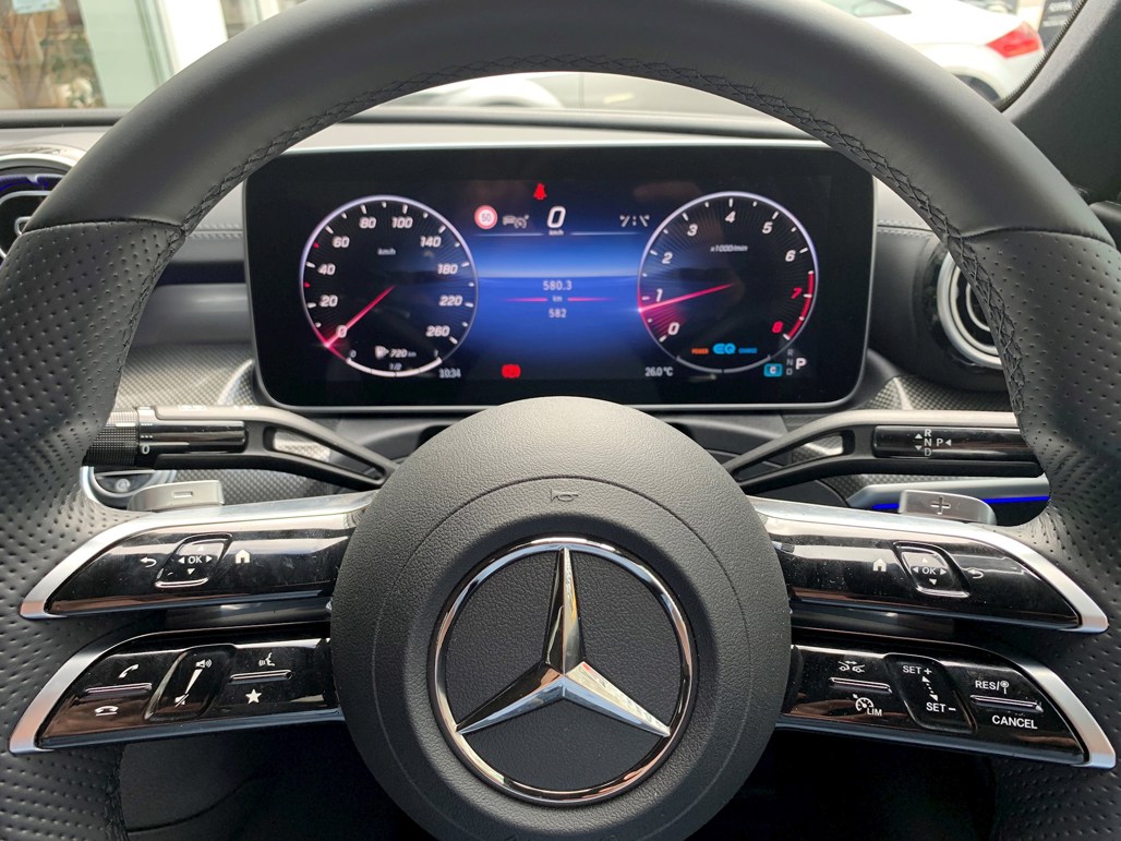 The C200 is quite well stocked, with a big boost to the standard equipment level, including Distronic radar cruise control, active steering assist, keyless entry/start, 10 airbags, 360 degree camera and improved assistance on country roads and lane centering on motorways. Traffic sign assist can also recognise roadworks and overhead gantries, and ‘when wet’ signs, plus stop sign and red light warnings, and live traffic updates – all very clever. The steering wheel buttons are good, but the slider volume control isn’t always your best friend. The Hey Mercedes voice control, however, often is.