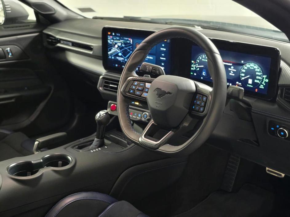 Other than the seats and some slick blue stitching around the interior, it's largely business as usual for a Mustang inside the Dark Horse, hinting at its production model status in the USA.