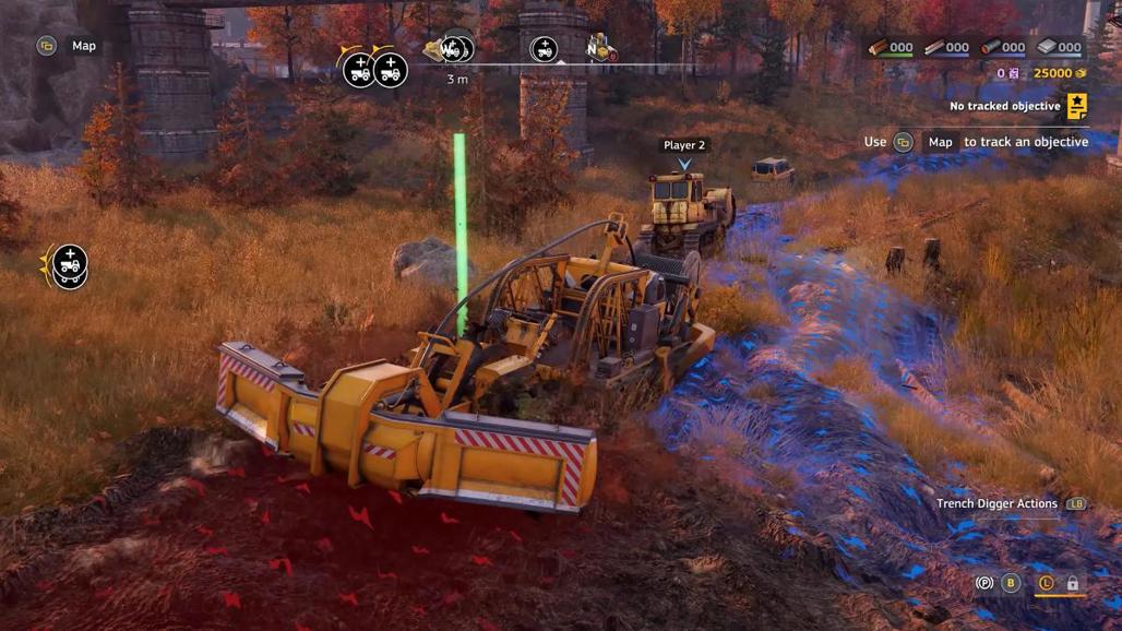You start with a basic array of crappy old rusty machinery, adding a front-end loader, dump truck, roller and asphalt spreader to your initial scout vehicle during the first few hours of the game, but it doesn’t take long before you start racking up more specialised machinery, like a tree-felling crane), log-hauling forwarder, log loader, stump grinder and the like.