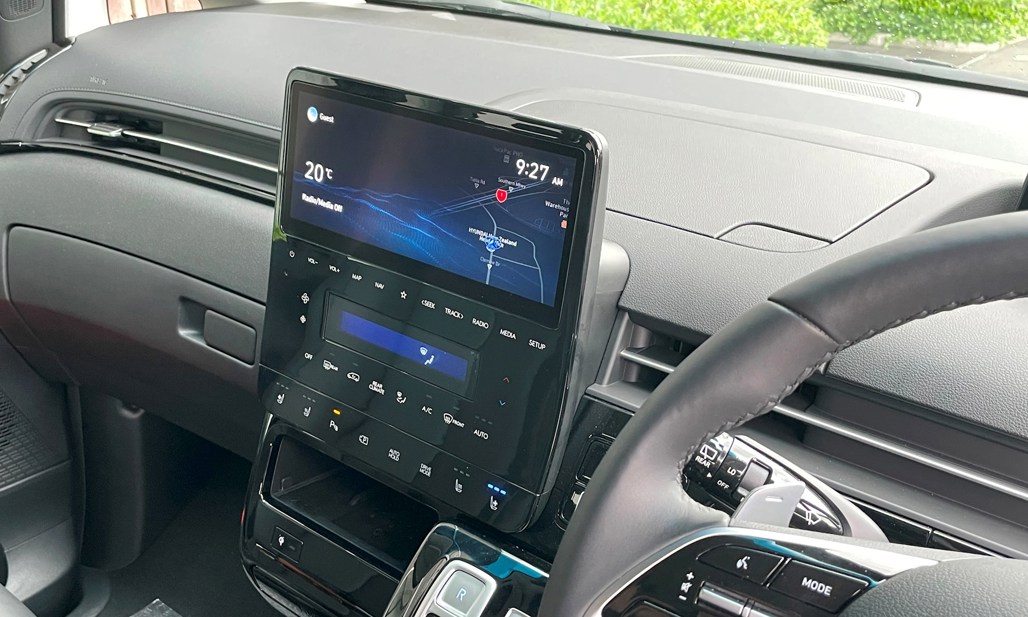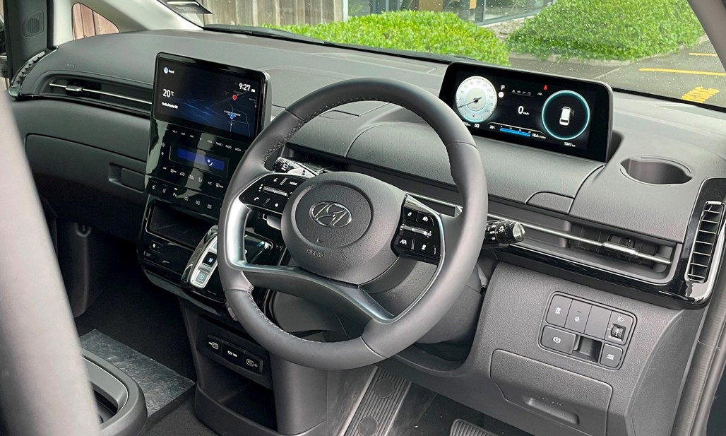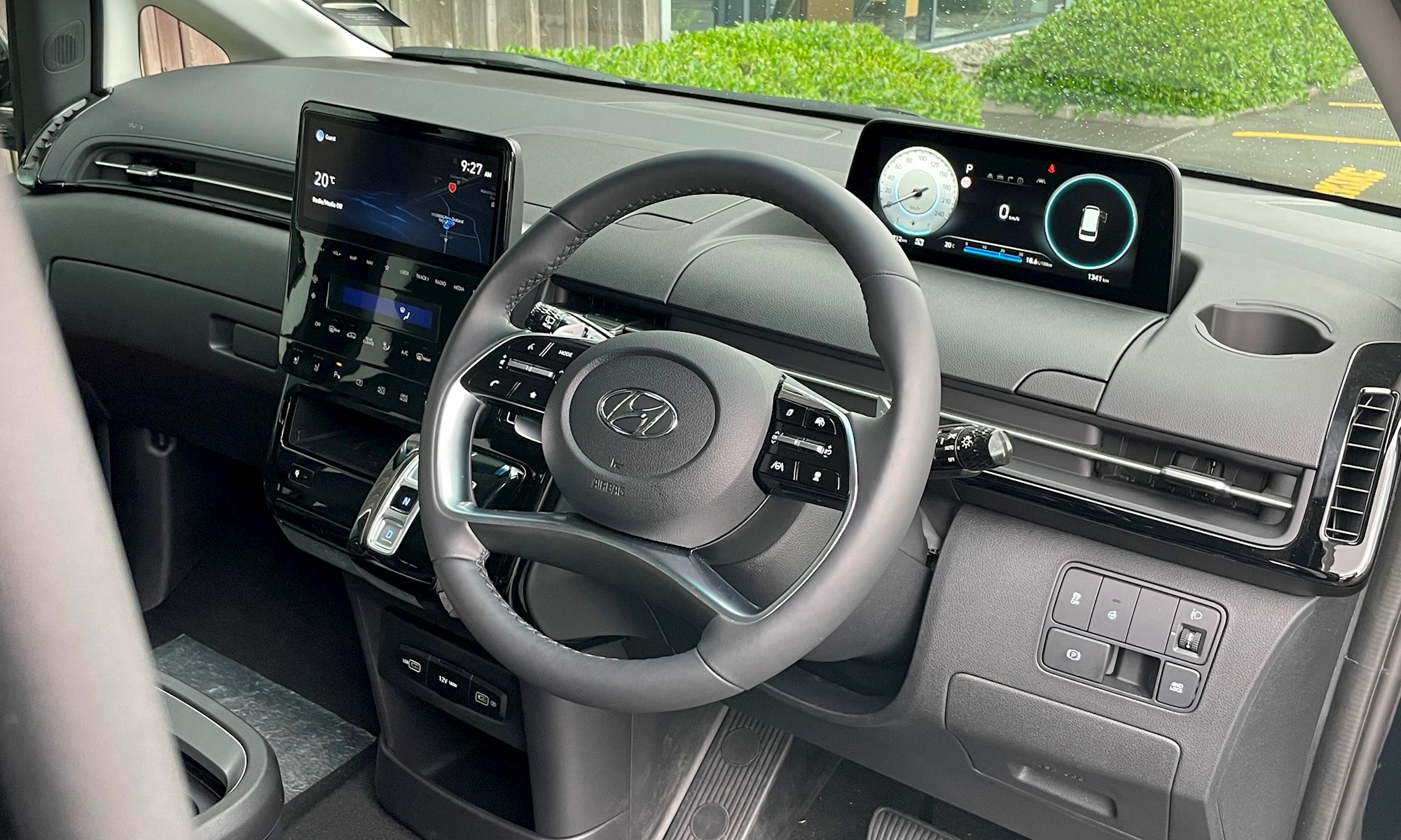 While we’re on the subject, the cabin styling is great and the tech is awesome, but the materials used for the dashboard and door trims are still pretty, well, vanny. Not a lot of texture and not many soft-touch surfaces. It reminds you that some Staria variants also serve as workaday vans.