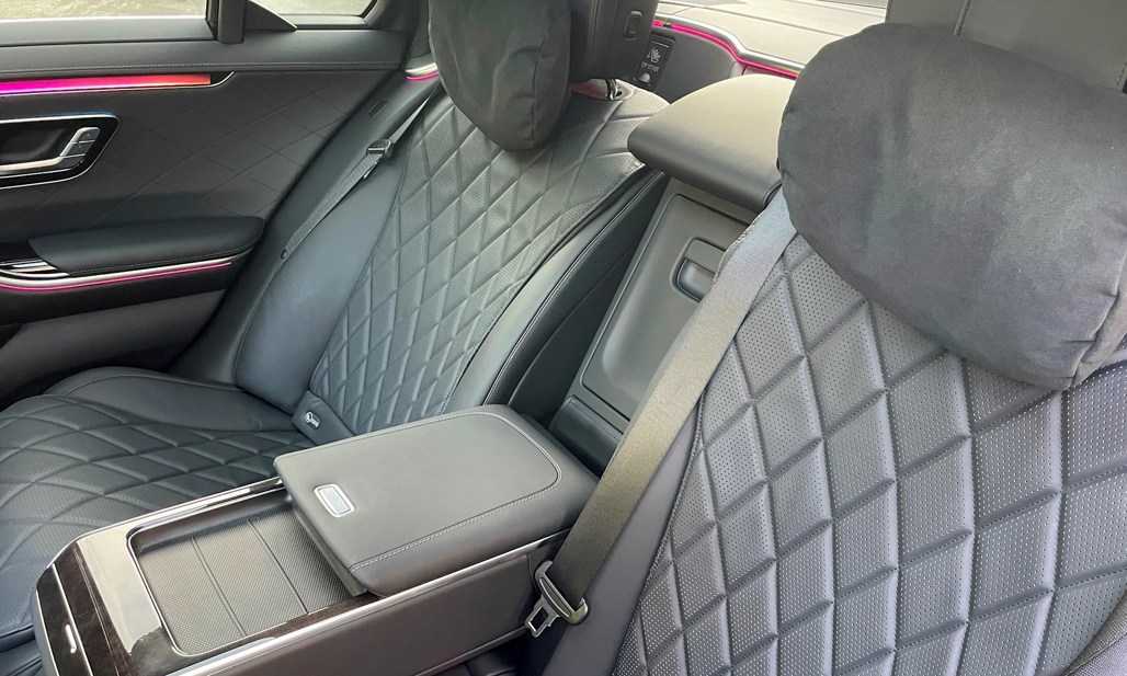 The centre-console OLED 12.8-inch portrait screen (a first for M-B) is the portal to a staggering series of sub-menus. Wireless phone projection is standard, but this is one car where you might not want to use it: the built-in navigation features M-B’s augmented reality function that will overlay real-time directions onto a camera image in the main screen. Not a new feature for the brand, but the platform for the technology provided by the S-Class’s imposing new cabin takes it to the next level.