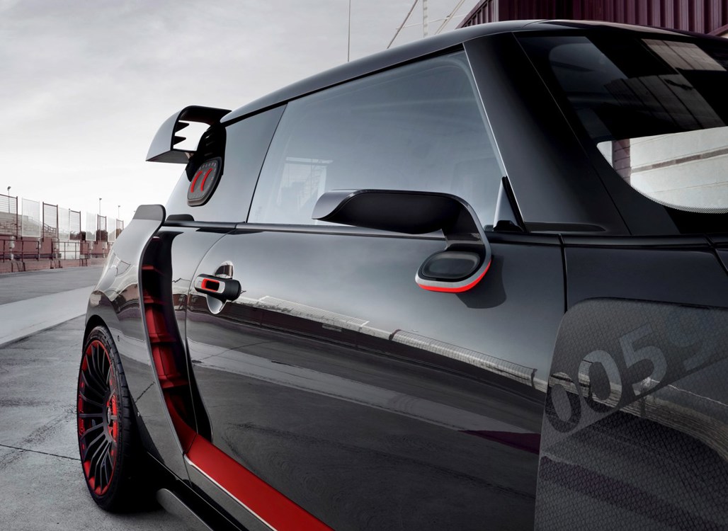 The concept is presented in Black Jack Anthracite exterior paint – said to shimmer between grey and black – with Curbside Red metallic accents. The car number 0059 refers to the year the classic Mini was born, 1959.