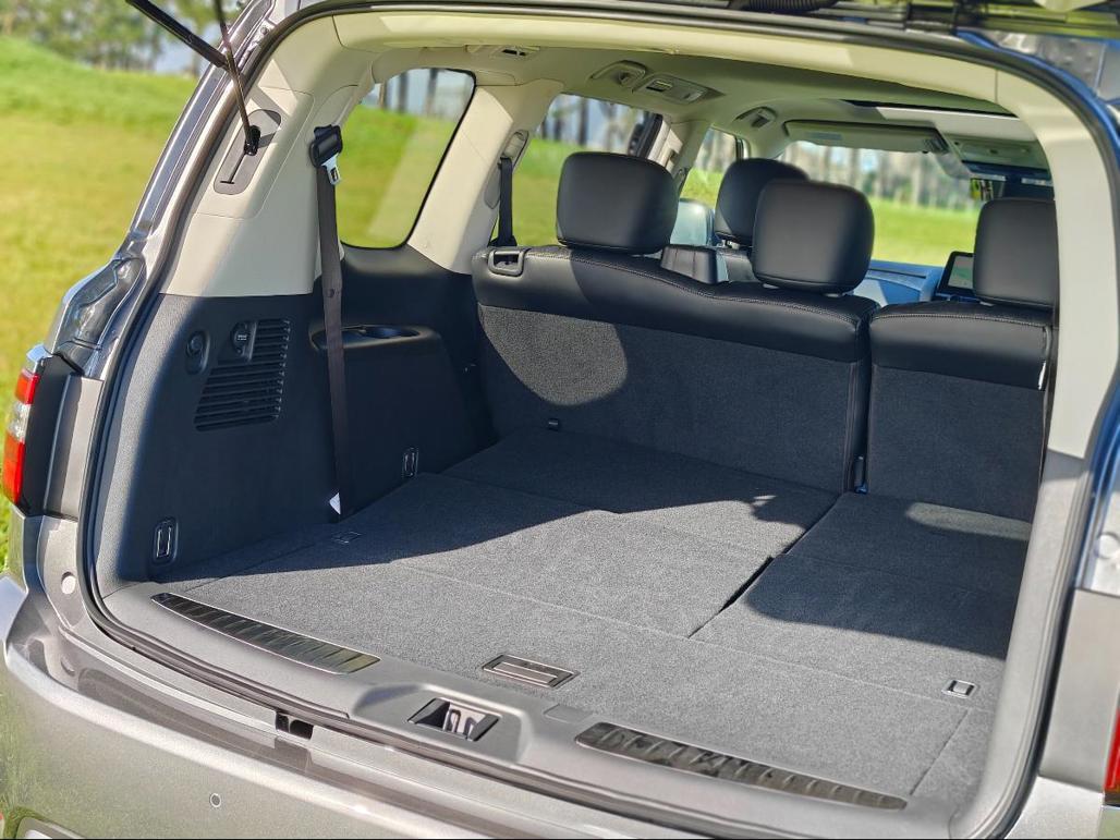 Well, it's enormous. There's no shortage of space for hauling the whole family and all the gear they could want to take in the Patrol, while the cabin is absolutely littered with hooks, cubbies, holders and other conveniences. The boot is, of course, enormous too, with 550 litres available with all three rows of seating in place, 1413 litres with the third row folded down and more than 3000 litres with all the rear seats folded down.