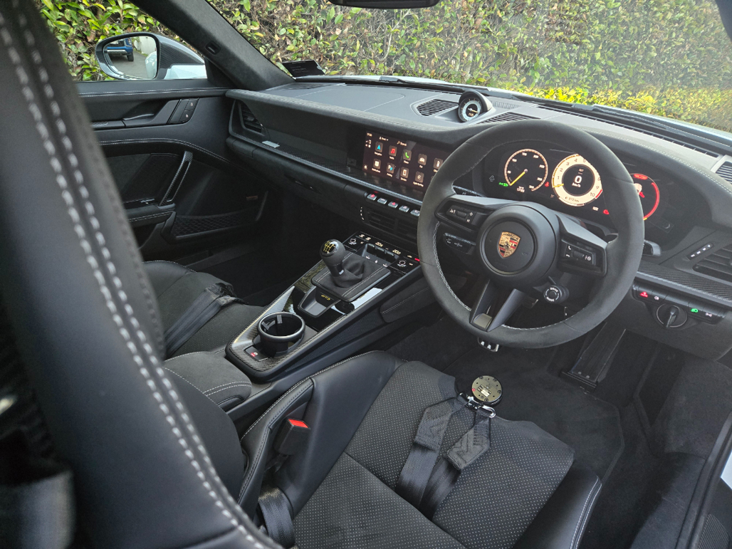 In fact, it’s worth pointing out at this stage that you can also have the GT3 in a Touring Package specification, including rear seats (a first for the model). It’s less aggressive looking, you can still have the manual and you can even add a Lightweight Package (albeit at an enormous extra cost of $66,510) that’s less motorsporty but still brings lots of CFRP. That’s a tempting bucket-list car.