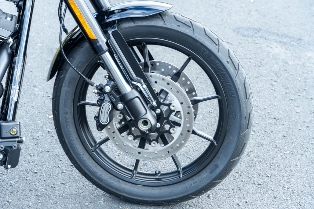 As for the chassis, it’s the most improved player on the Softail team, the longer suspension travel allowing better bump absorption, the lighter wheels quickening the steering of a large, long bike that now feels miraculously agile. You get three powerful disc brakes with the LR-S where most Softies get two. With the help of the grip of the Michelin Scorcher tyres, they deliver serious powers of arrest.
