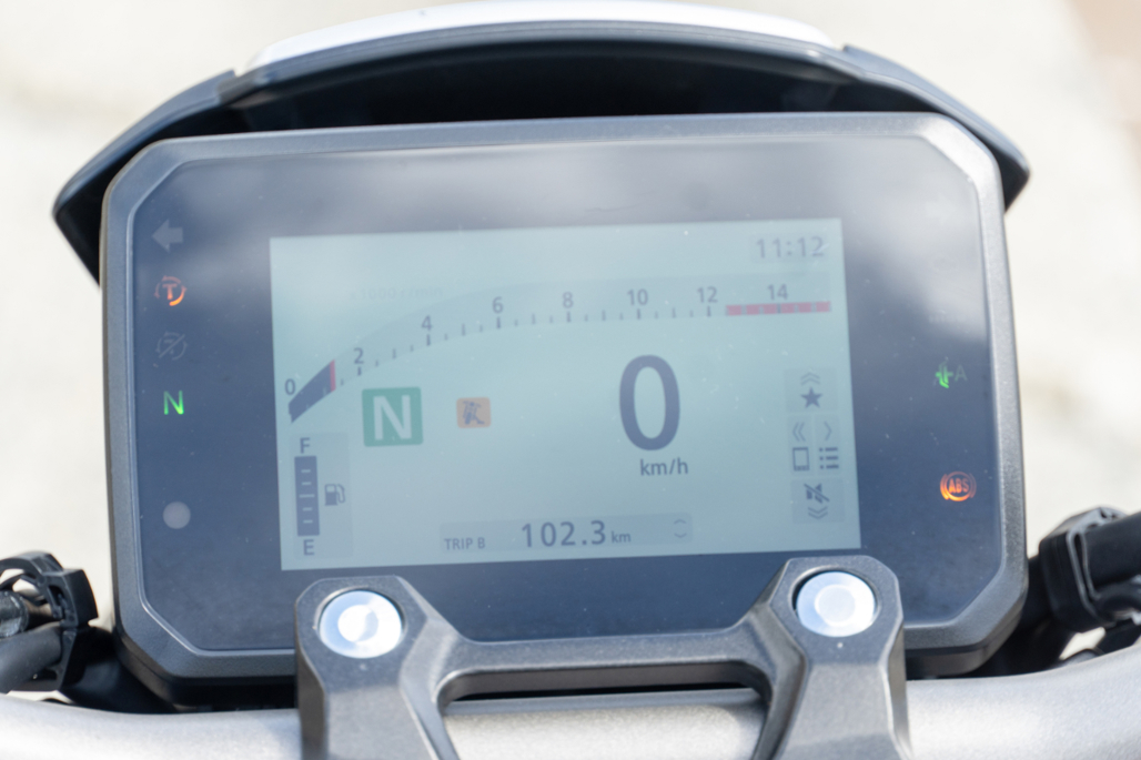 Any use of the clutch lever with the E-clutch active also initiates manual mode for a couple of seconds. Which means that there’s plenty of options when operating the CB650R and you soon work out what’s best for your riding style.