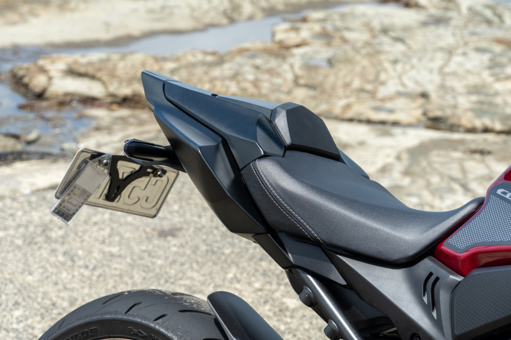 Not that the rider will rev the 206kg CB650R to that point often. For in the LAMS-friendly 48bhp (36kW) form sold here, there isn’t enough oxygen reaching the combustion chambers of the engine above 6000rpm to sustain the initial surge of acceleration below that crankshaft speed. Other markets get the full-phat 70kW (93bhp) version.
