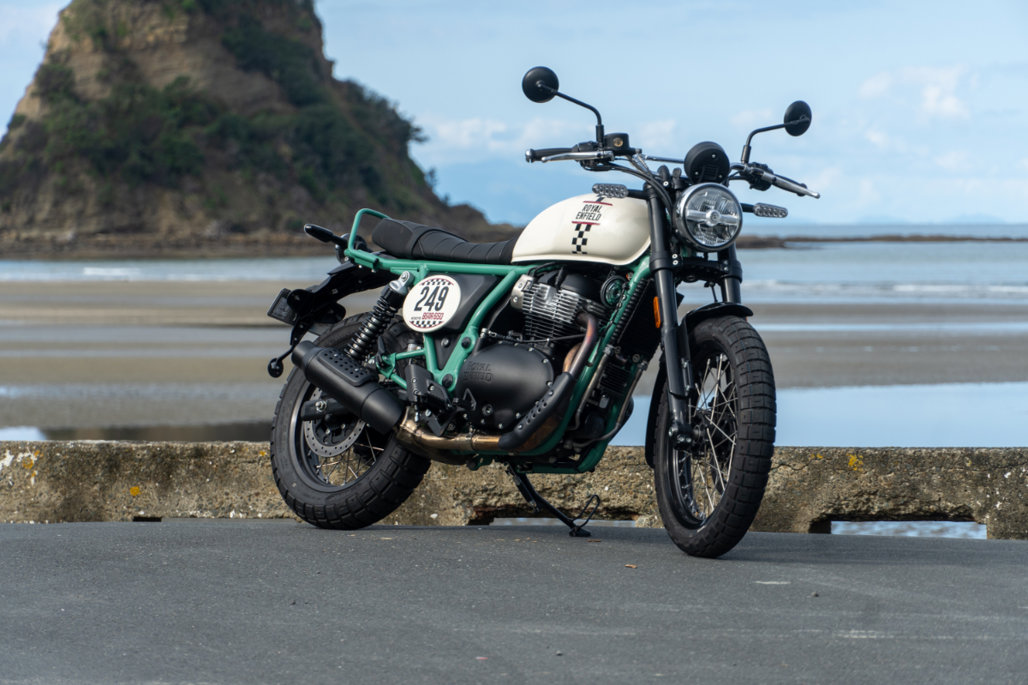 The 650cc engine is shared with the Interceptor roadster and Continental GT café racer, but is tuned with a two-into-one exhaust.