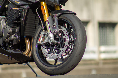 But the Speed Triple RR isn’t all show, it’s a real performer that feels like it is glued to the road thanks to its semi-active Öhlins electronic suspension. With multiple settings that are easily selected through the TFT dash, you can tailor how the RR feels on the road in moments.