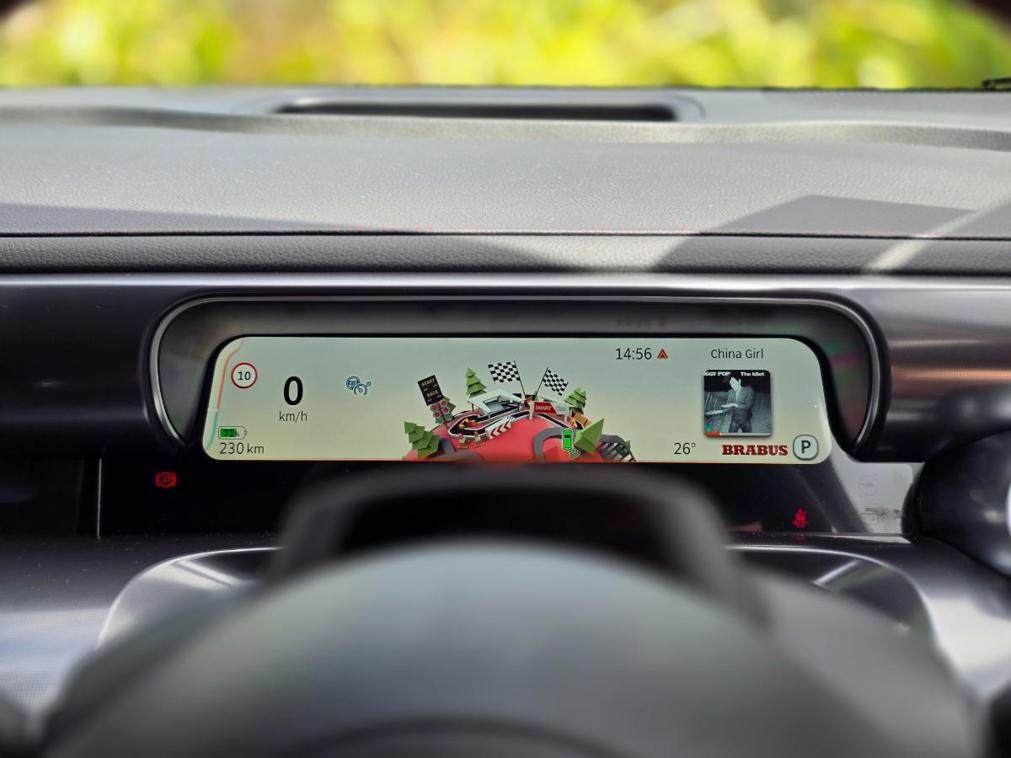 The most impressive thing about the Brabus version of the #1 is the fact that, if you totally ignore the Brabus drive mode setting, it feels almost exactly like the standard #1, but if you drop it into Brabus mode you get face-peeling acceleration. Which we like very much.