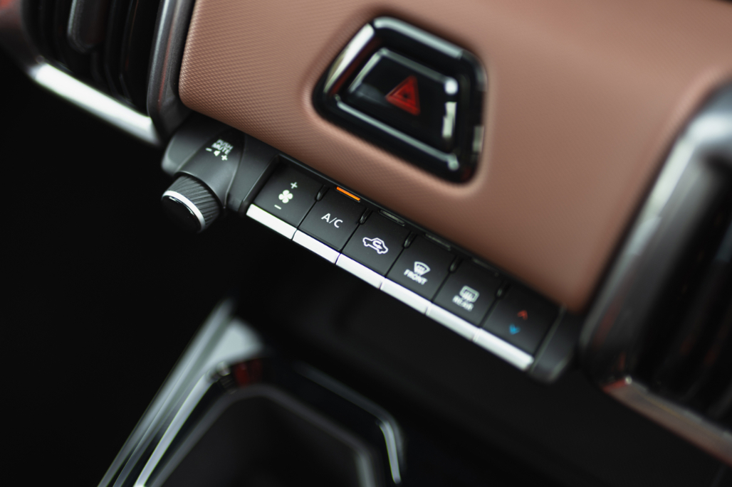 Suzuki has gone all 4x4-chunky with the cabin styling: lots of squared-off shapes and some truly substantial ventilation outlets, with satin-finish surrounds.
