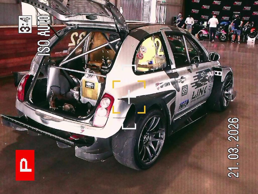 One downside of shooting at a motorsport event is that, while the Mini Evo Cinema has a zoom function, it is only a digital zoom that basically just crops the image, meaning that distant track action disappears into an indistinct fuzzy mess.