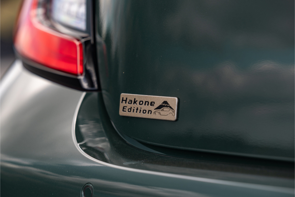 So that’s the bad news. For the record, the Hakone (it’s named after a whizzy road in Japan) comes in a stunning Ridge Green colour, with bronze alloys, Ultrasuede/tan leather upholstery on the front seats and some really cool factory badging – including a little emblem on the gearknob.