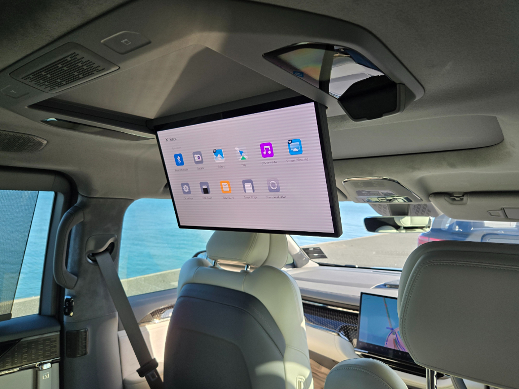 The thunderous 3000W Yamaha sound system is also worth a mention: it’s tailored for the car, with 30 surround-sound speakers and another 8 in the headrests.