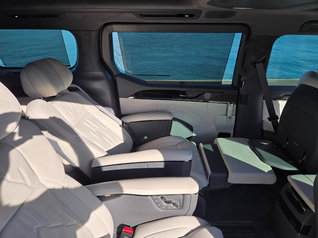 Back to the more, ahem, utility-focused 7-seat model. The left-side seat is the place to be really, because the recline function goes even further and aligns with a powered footrest to create the full lie-down experience.